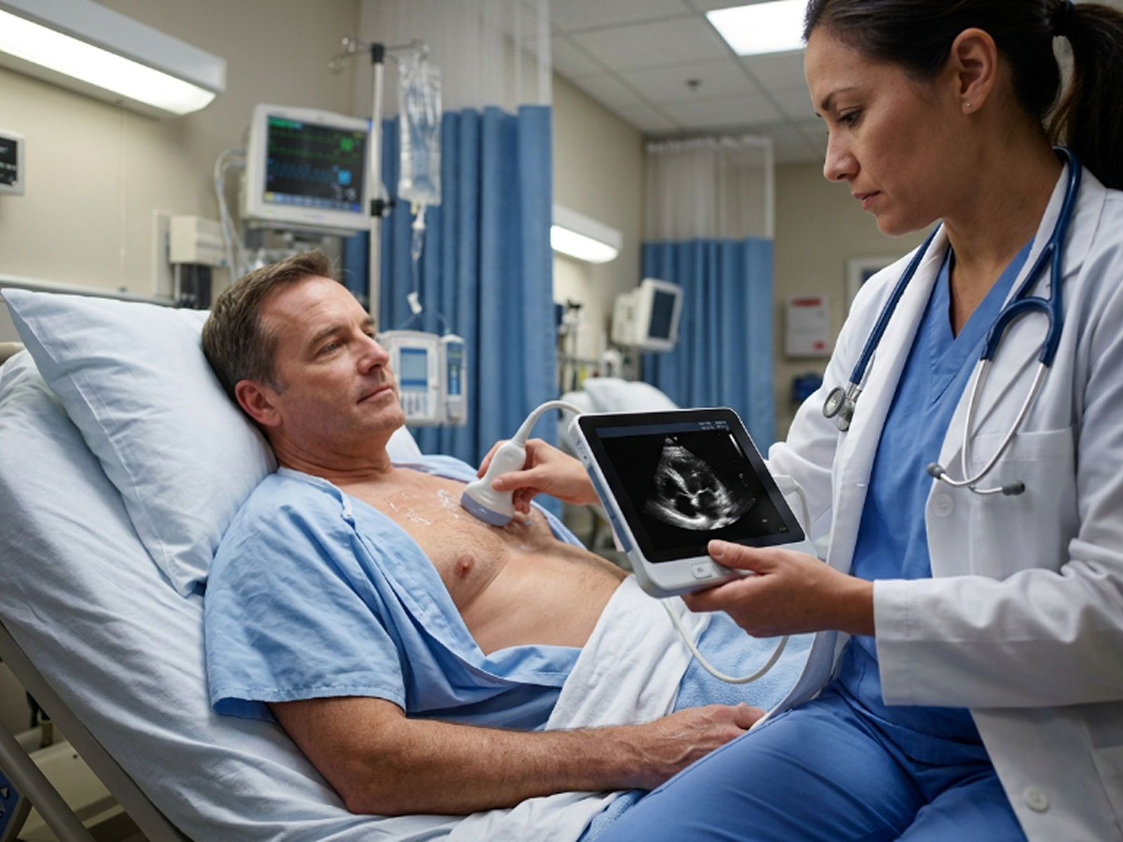 Echo (POCUS) uses ultrasound technology to create real-time images of your heart’s structure and function. It helps assess heart valves, chambers, and blood flow with high accuracy.