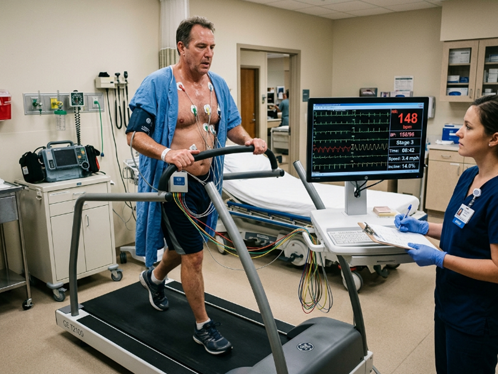 A Stress Test evaluates how your heart performs under physical exertion or controlled stress. It helps identify blockages, reduced blood flow, or abnormal heart responses during activity.